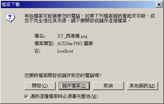 若強制存檔設定為 True ,則將不使用瀏覽器展示,並跳出詢問對話框詢問圖檔是否儲存,即使選擇開啟,亦將改依系統預設軟體開啟,如 ACDSee。